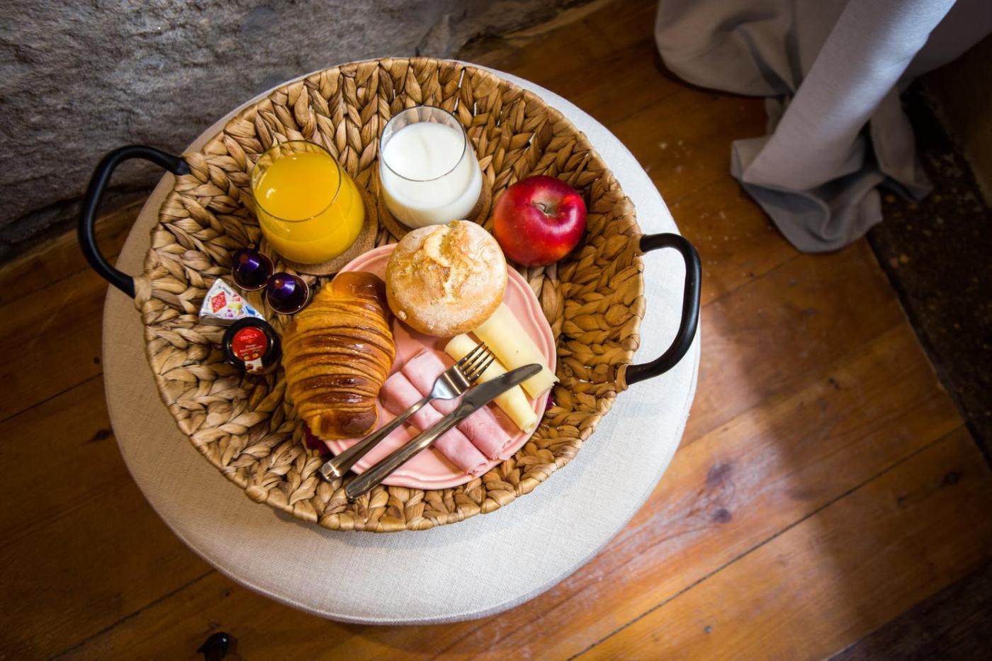 Uma cesta de pequeno-almoço diariamente é fornecida nos quartos todas as manhãs. É composta por pão, croissants, compota, fiambre, queijo e cápsulas de café.